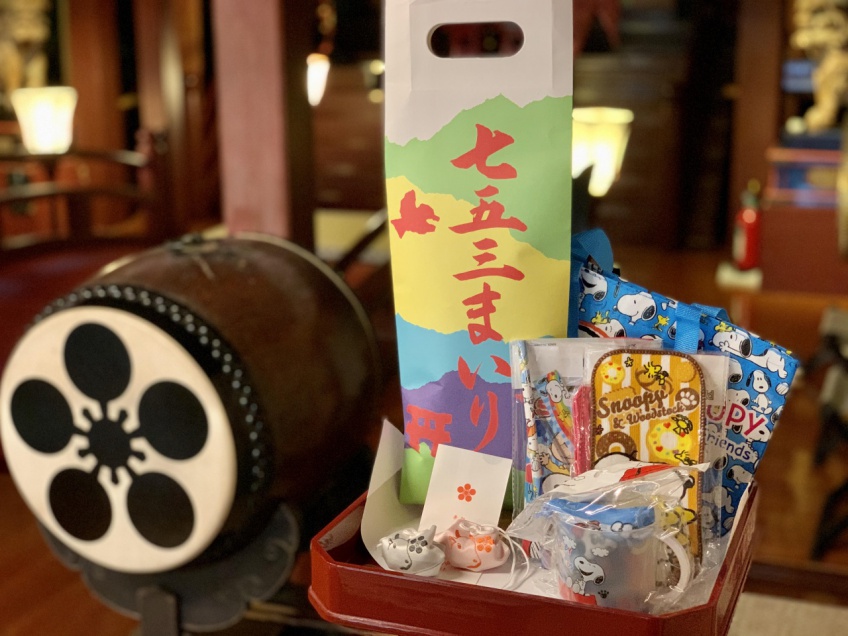 Amulet for child, Special candy for Shichi-go-San, stationary set.
